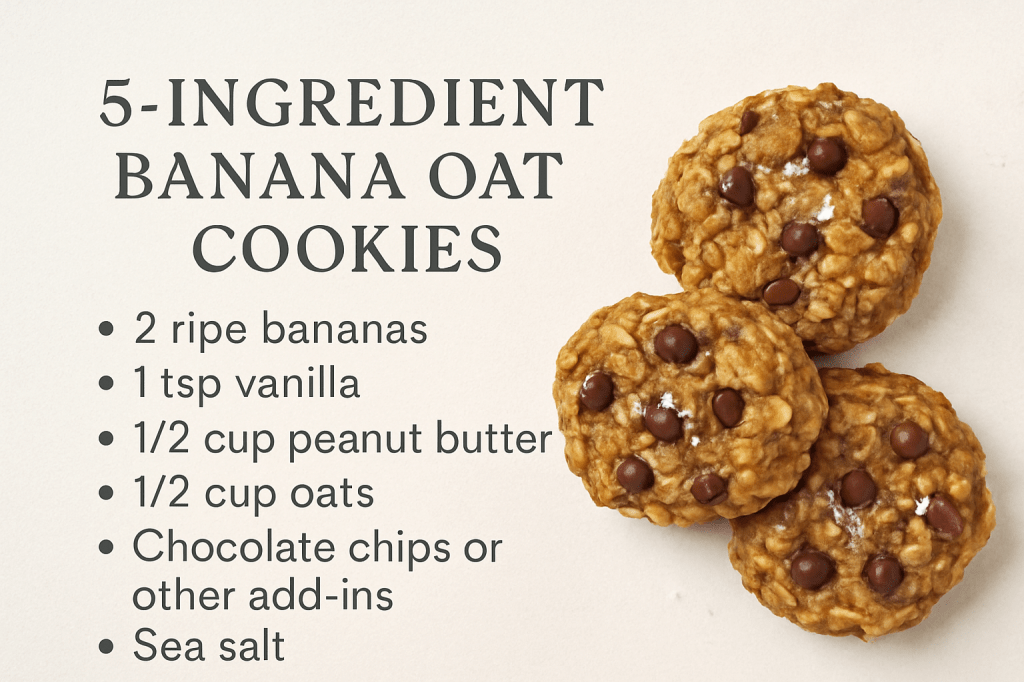 These are my go-to cookies when we want something sweet, fast, and not packed with sugar or drama. With only five ingredients (plus whatever extras you have), theyâre perfect for after-school snacks or âoops, I forgot itâs bake sale dayâ moments.